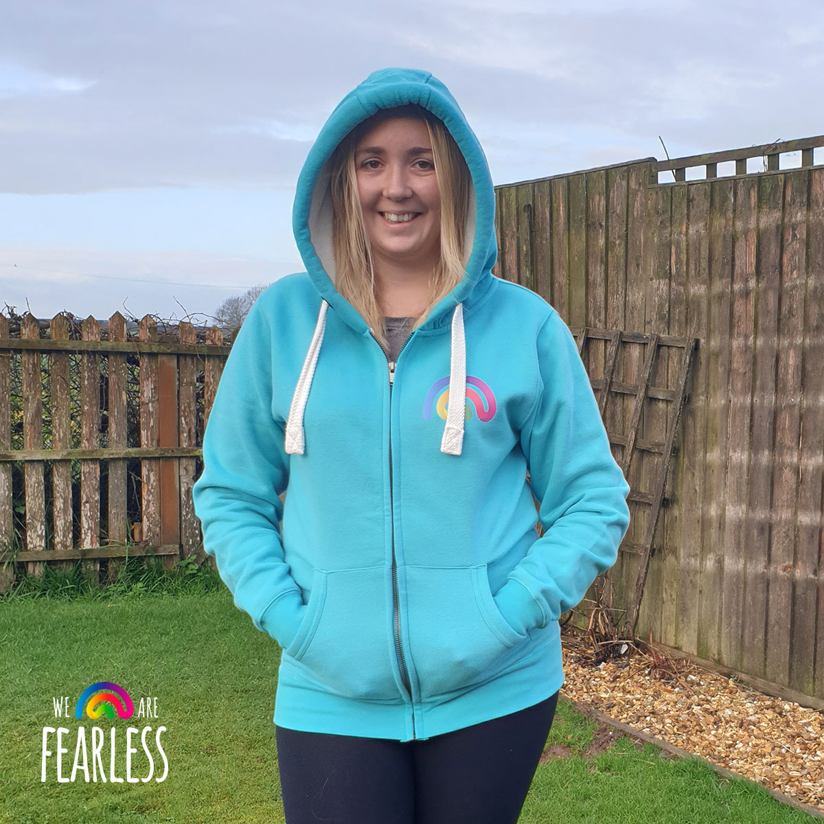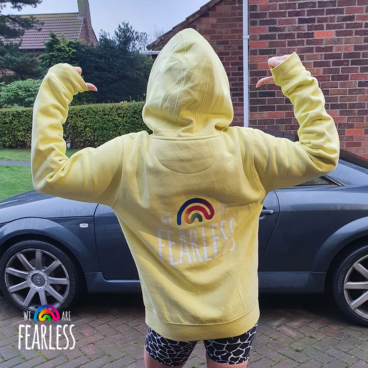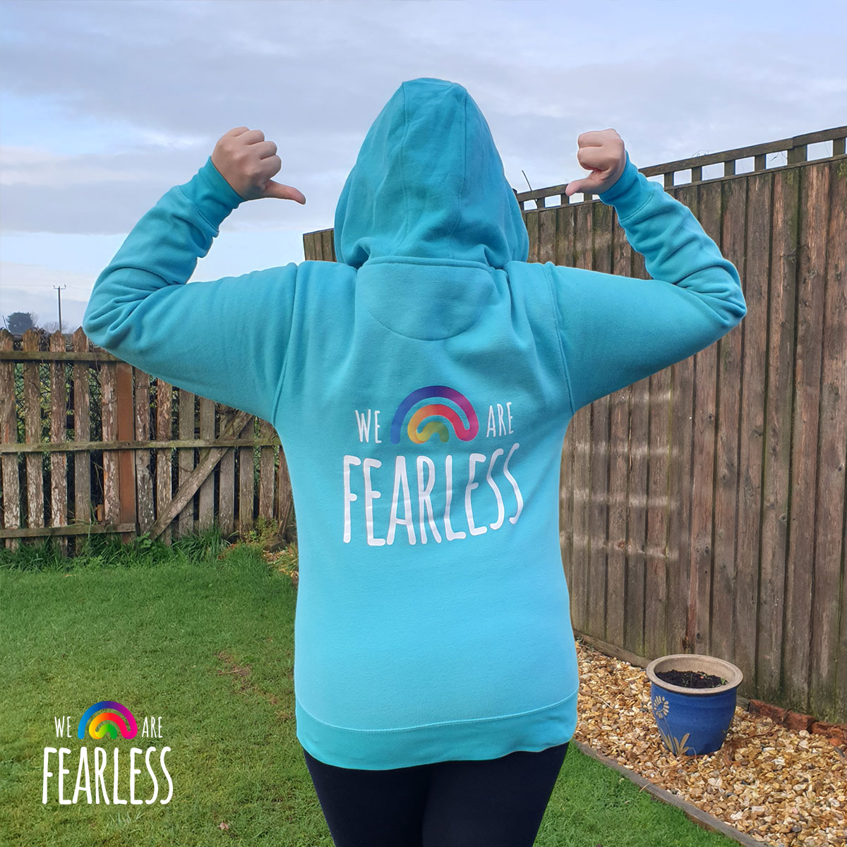 - Our beautiful unisex hoodies are available in a rainbow of colours with WeAreFearless on the back and small rainbow logo on the front.
